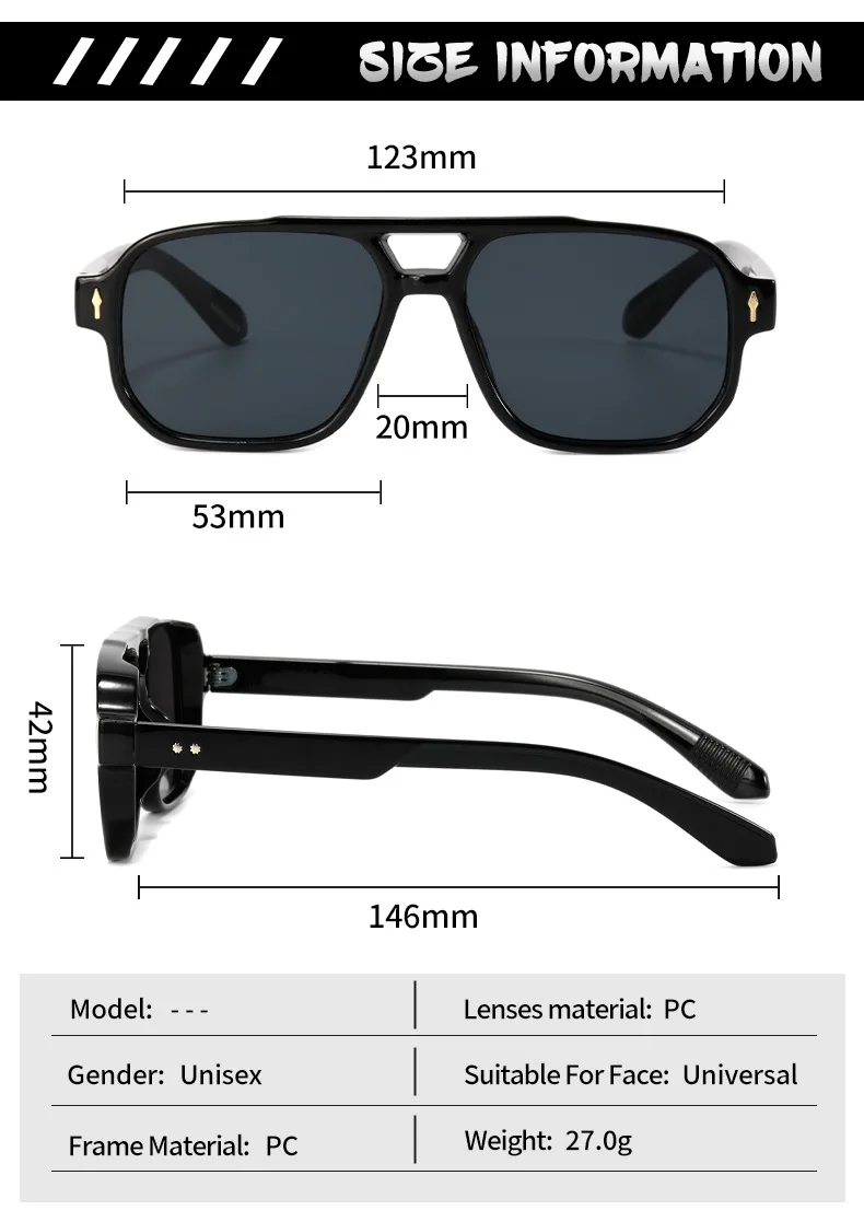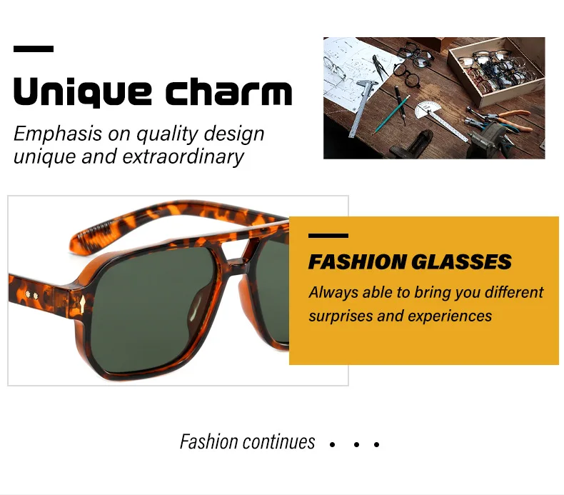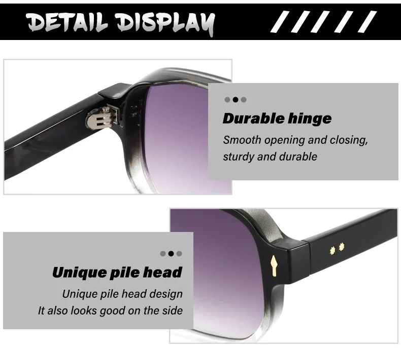 1.איכות פרימיום: משקפי השמש האופנתיים שלנו עשויים מחומרים איכותיים, המבטיחים עמידות ושימוש לאורך זמן.