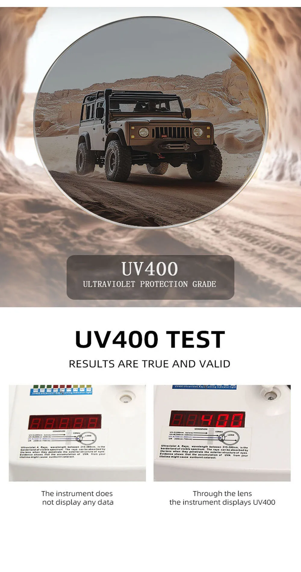 - UV protection rating: UV400 Sunglasses