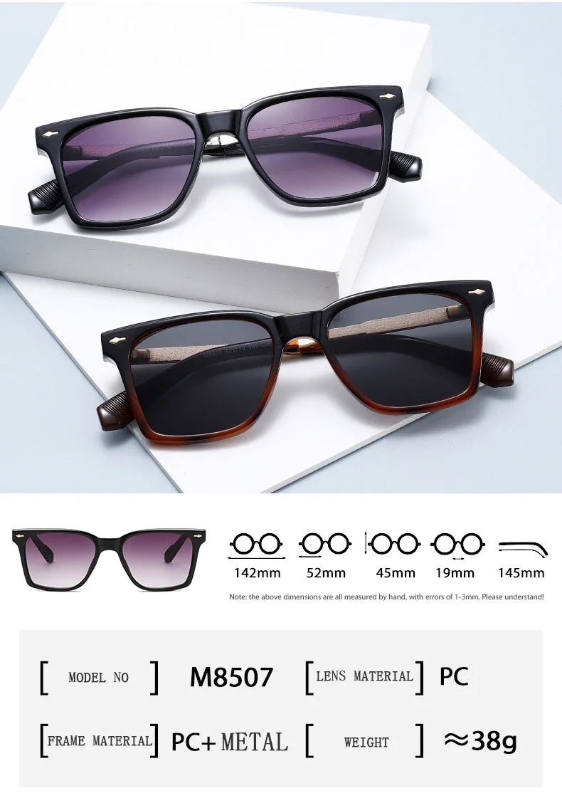 זהו הסגנון החדש ביותר של משקפי שמש, משקפי שמש אלו עשויים מעדשות חוסמות UV איכותיות, עם מסגרת איכותית, לא רק עמידה, מסוגננת ויפה, אלא גם נוחה ללבישה, מדובר במשקפי שמש נהדרים.