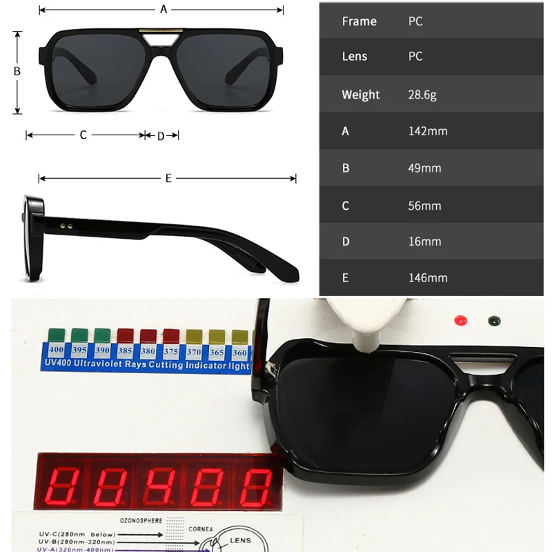 משקפי שמש מרובעות עם גשר כפול גברים נשים SALE
